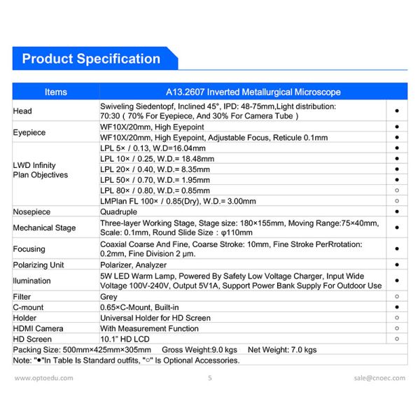 | Items | A13.2607 Inverted Metallurgical Microscope | |
