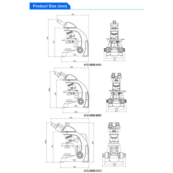 | A12.0909 Biological Microscope | A | B | C | A1 | B1 | C1 | |