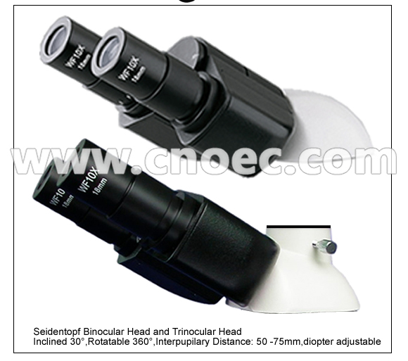 | Seidentopf Head, Inclined 30°, Rotatable 360°, Interpupilary Distance 48-75mm, Left Eyepiece Tube Diopter Adjustable +/-5°, Trinocular Head Light Split 0:100/20:80. | ||||||